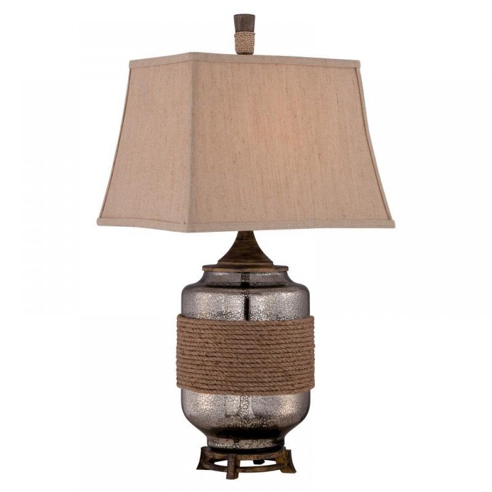 Klasická 83 cm vysoká stolná lampa, s látkovým tienidlom a s motívmi prístavného štýlu.