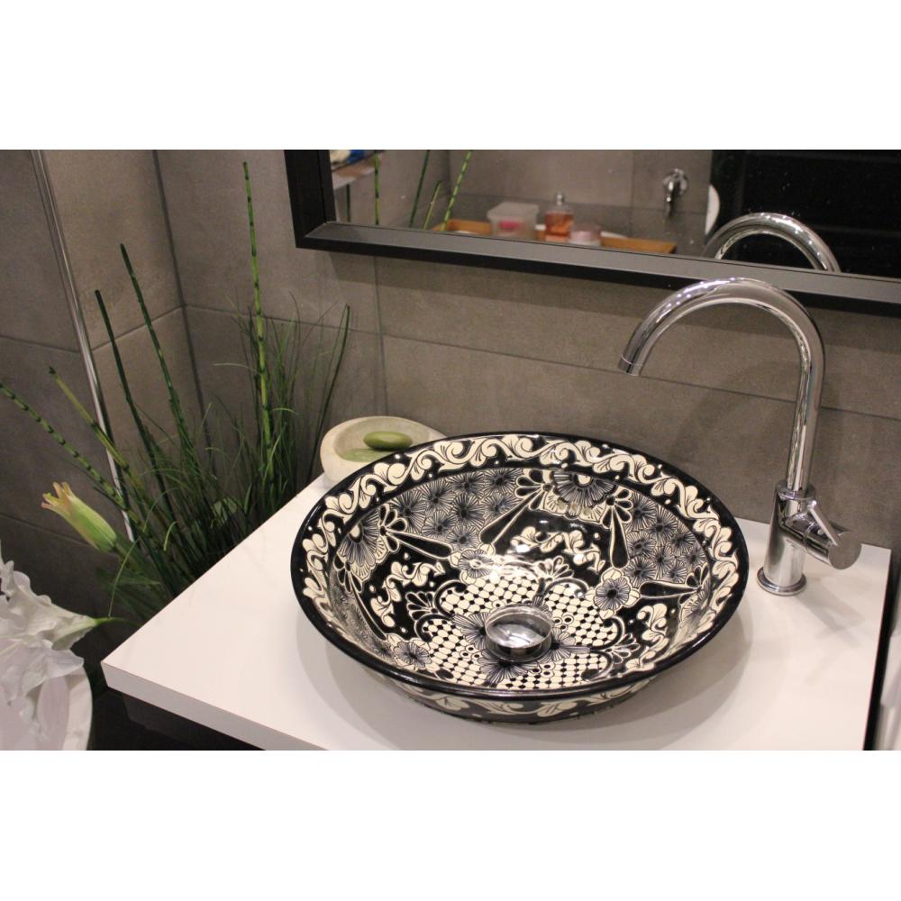 CM Čierna, ručne maľovaná mexická keramická umývadlová misa, 40 cm priemer