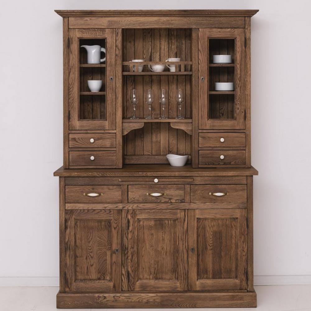 LM Rustikálny štýlový jedinečný masívny vitrínový príborník, dostupný v rôznych farbách