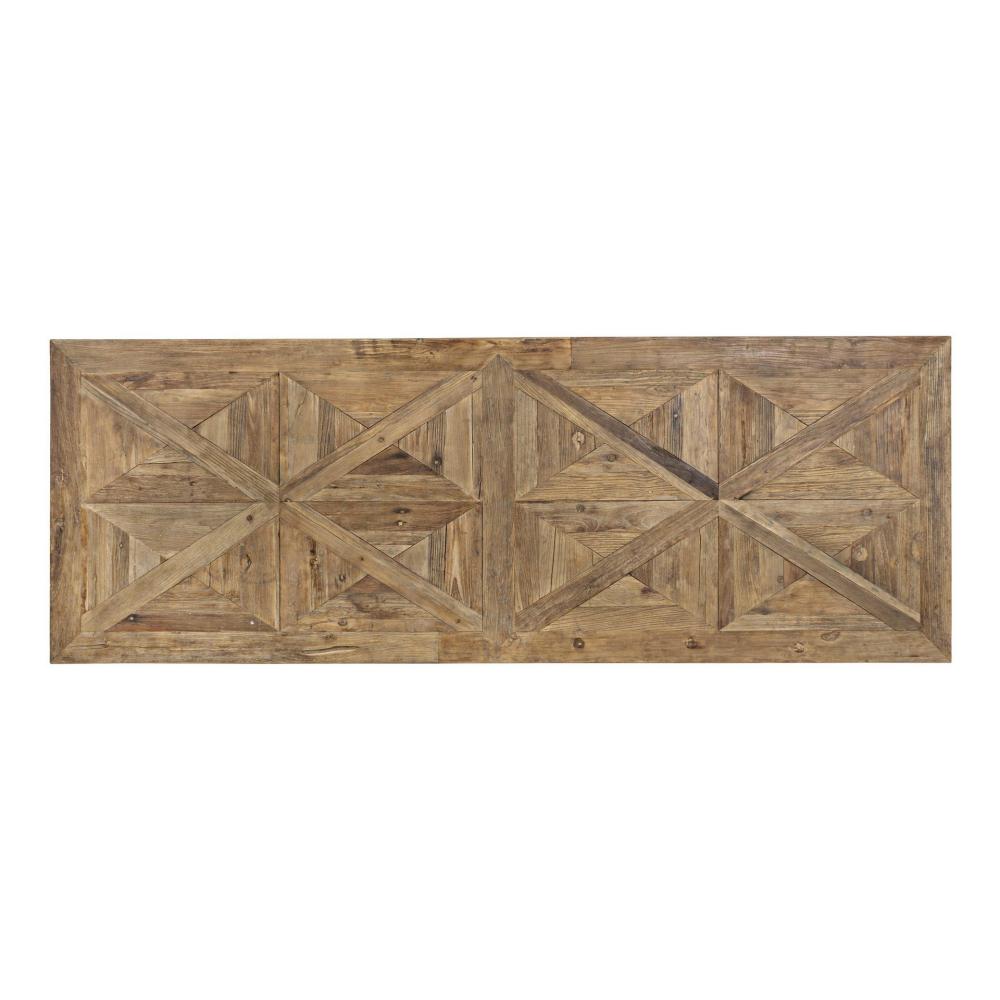 Povrch stola je drevenou mozaikou, starostlivo spracovaný povrch.