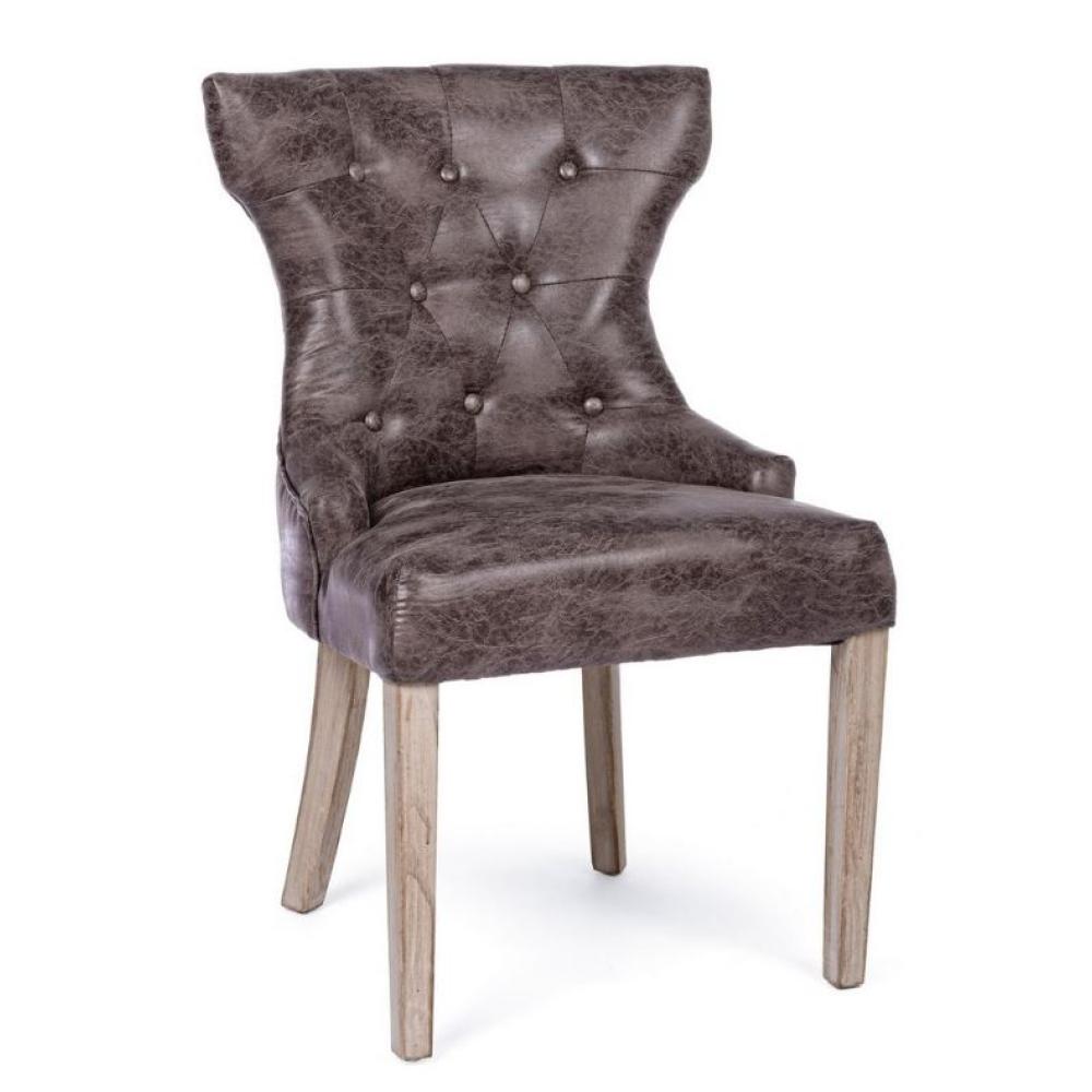 BZ Čalúnená, kapitonovaná stolička s umelokoženým operadlom, s bielenými nohami z kaučukovníka