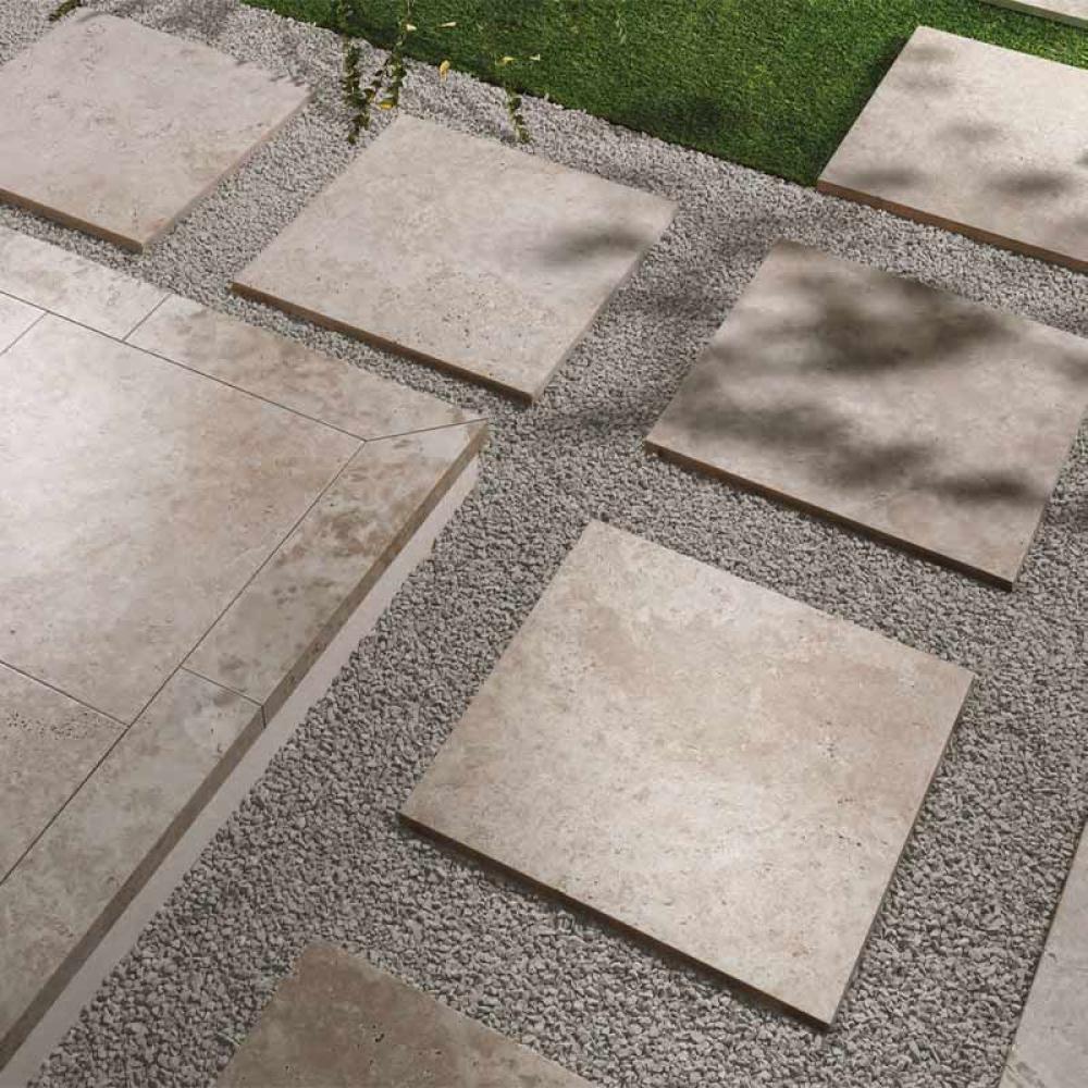 19 mm hrubá mrazuvzdorná, vonkajšia I. triedy dlažba. Vzhľad vápenca, neodlíšiteľný od skutočného kameňa vďaka HD technológii.