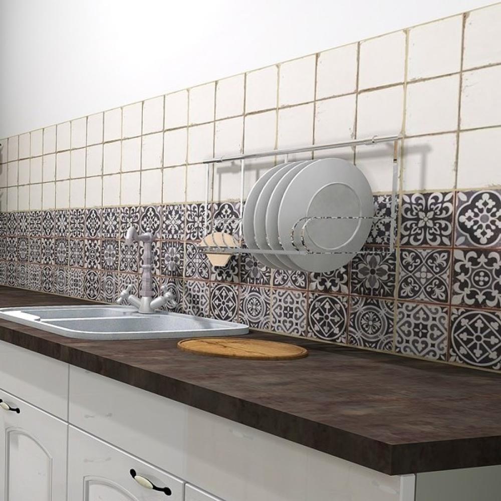LK Klasický štýlový, malý čierny vzorovaný obklad, do kuchyne, na stenu