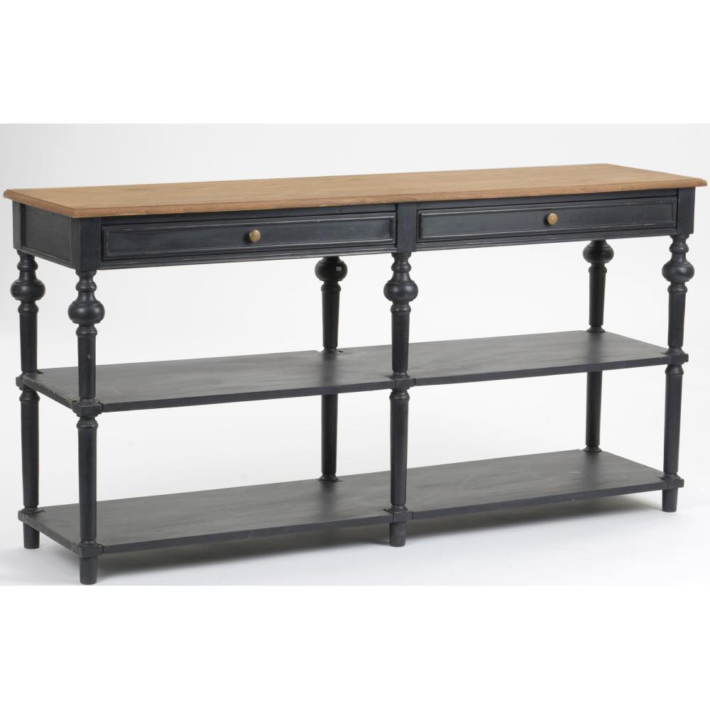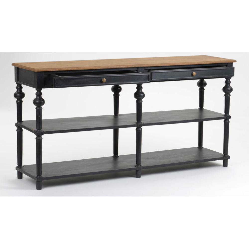 Čierny drevený konzolový stôl, s dvoma zásuvkami, šírka 160 cm.
