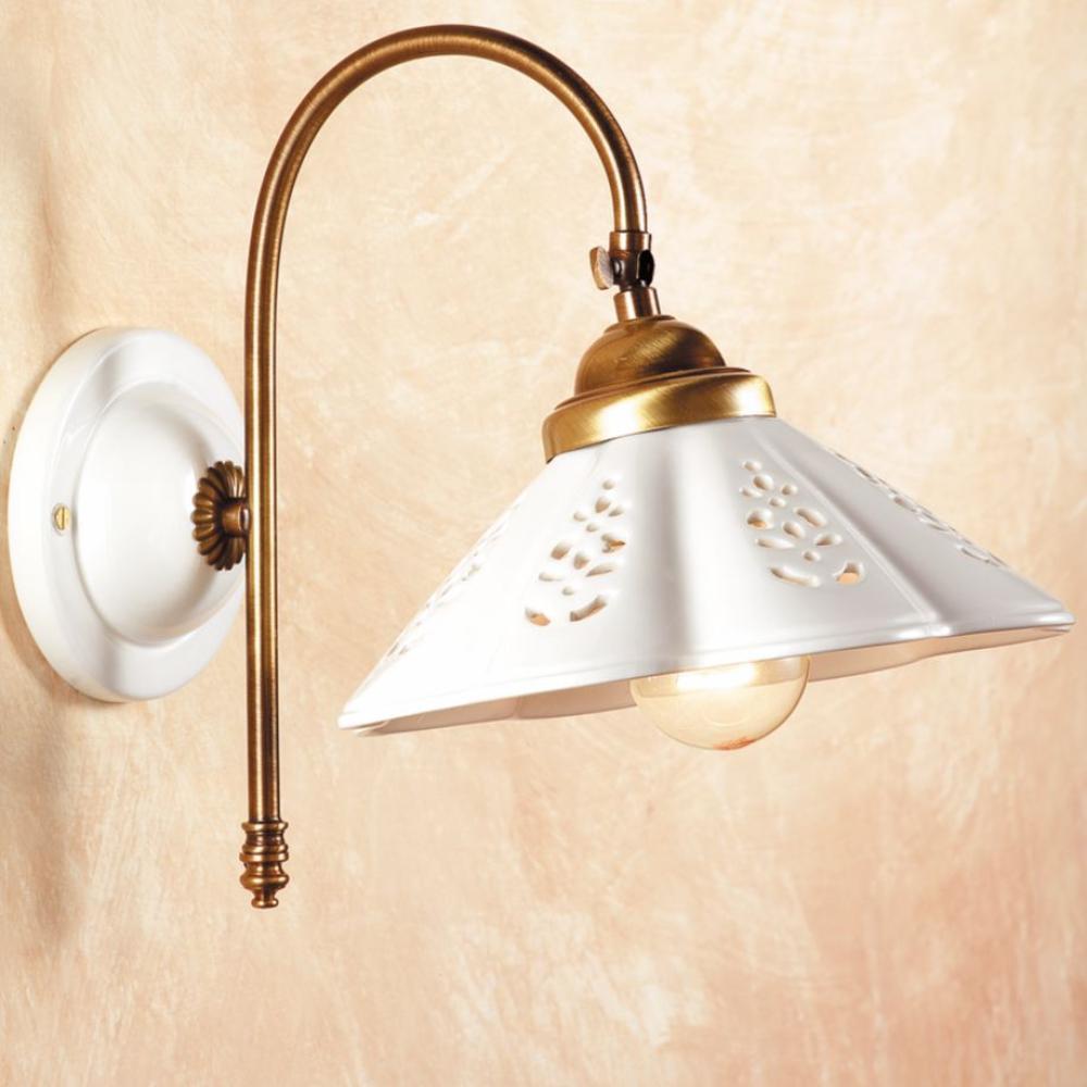 Klasický nastaviteľný kovový nástenný svietnik, s vyložením 27 cm od steny a priemerom 22 cm dierkovaný keramický tanier.