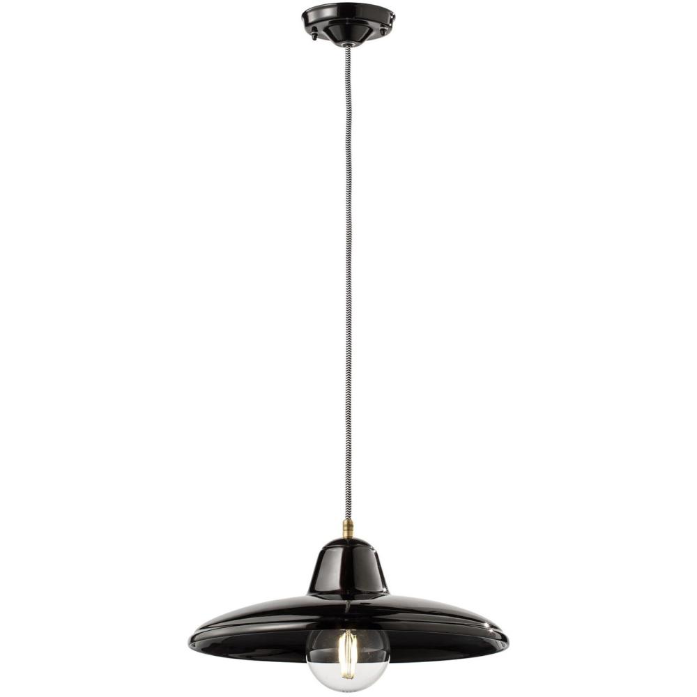 FL Retro štýlová čierna hliníková závesná lampa, s tanierom s priemerom 35 cm