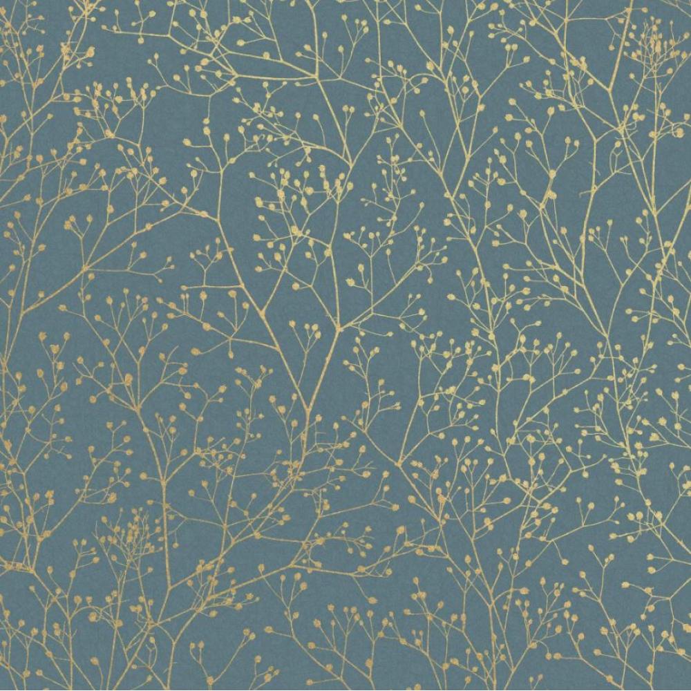Elegantná, zlatá divokokvetá vzorovaná, svetlomodrá tapeta.