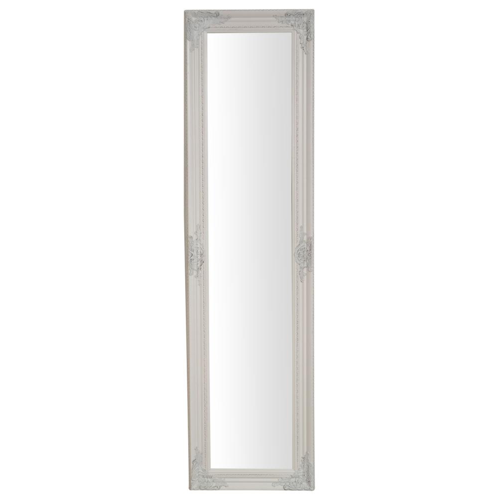 BISC Biely patinovaný drevený rám, veľké stojace zrkadlo, 44x164 cm