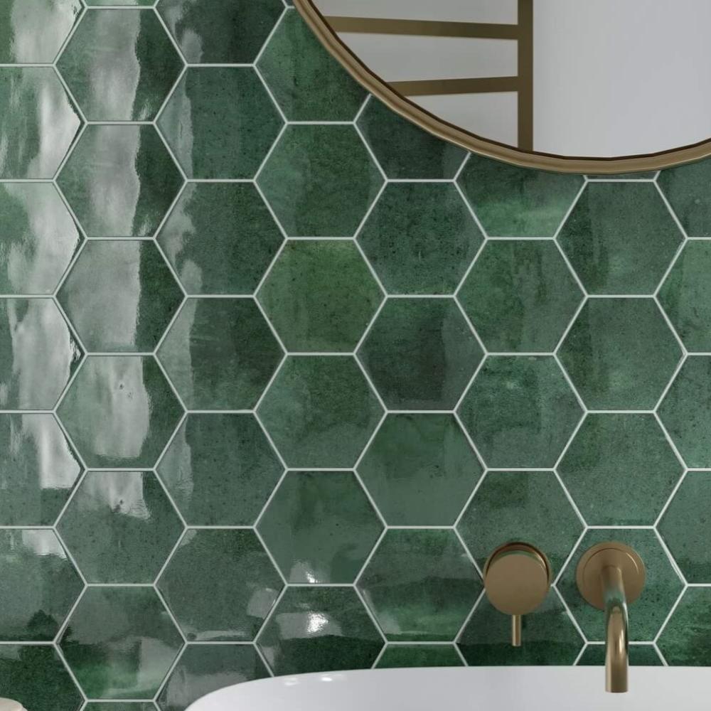 LK Lesklá, malá zelená šesťuholníková dlaždica / 11,8x10,2 cm