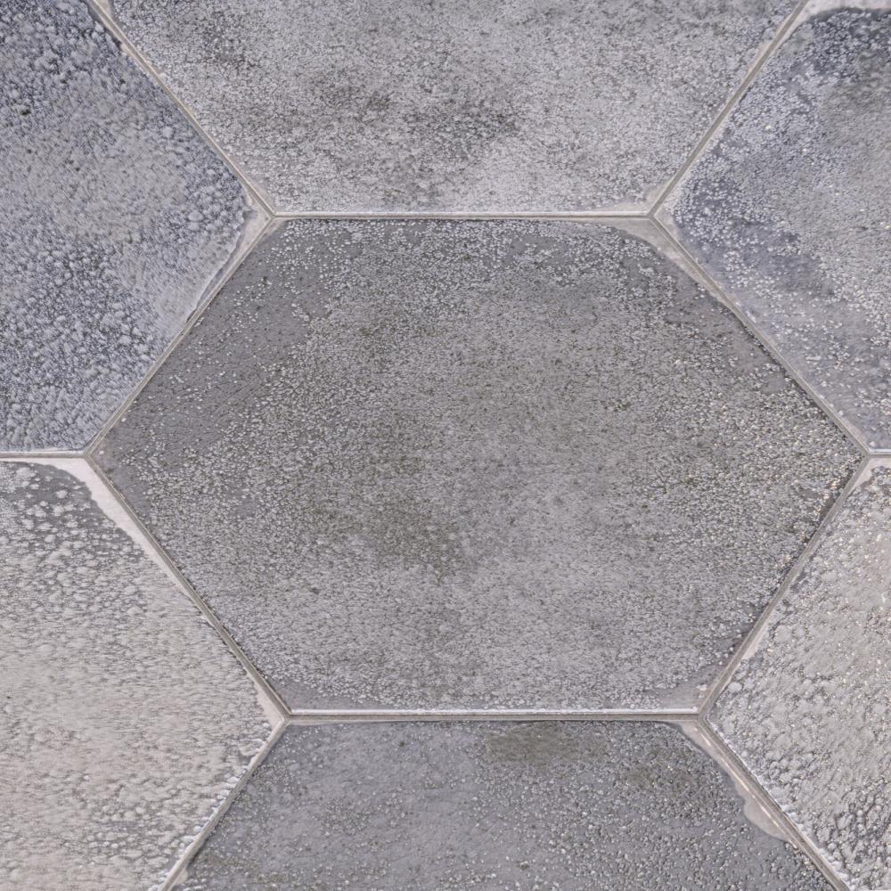 Lesklá, hexagonálna, rustikálna povrchová, antracitová farba podlahová dlažba, obklad.