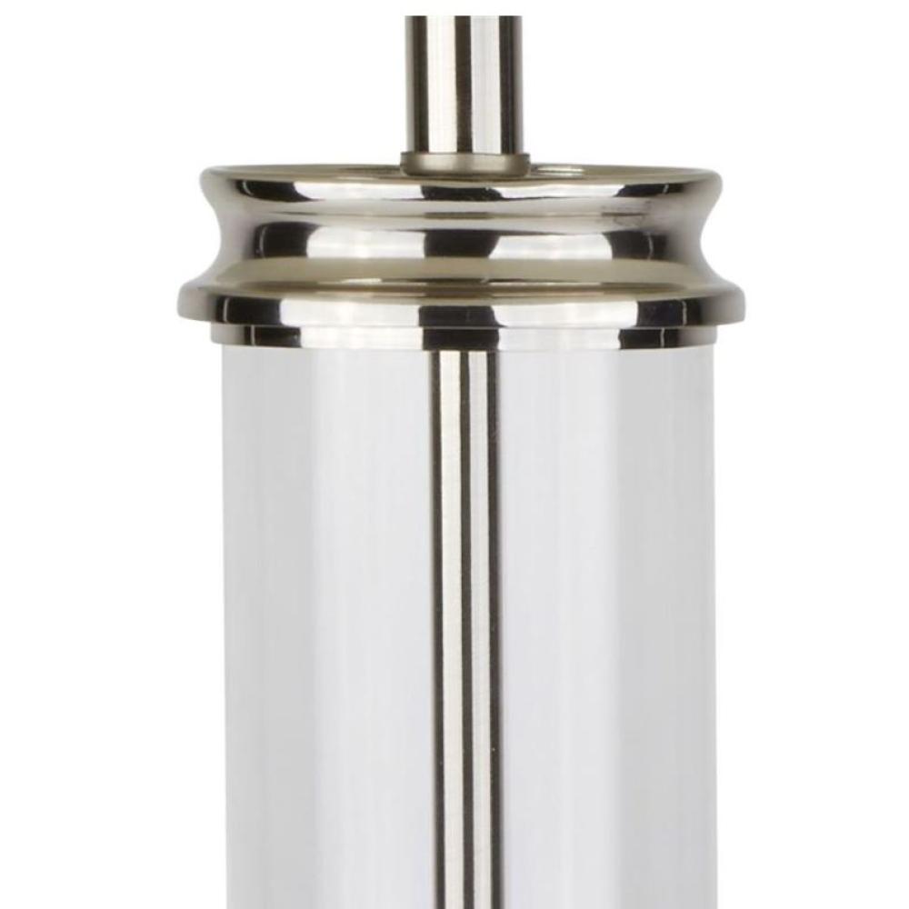 Túto chrómovanú lampe so sklenými vložkami odporúčame predovšetkým do klasických a elegantných interiérov. Kombinácia bieleho tienidla, skleného stĺpa a lesklých chrómových častí vytvára skutočne prepracovaný vzhľad.