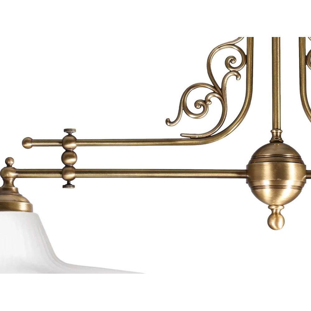 Luster vyrobený v Taliansku, elegantného, klasického štýlu z pravé mosadze, s bielymi skladanými sklenými tienidlami.
