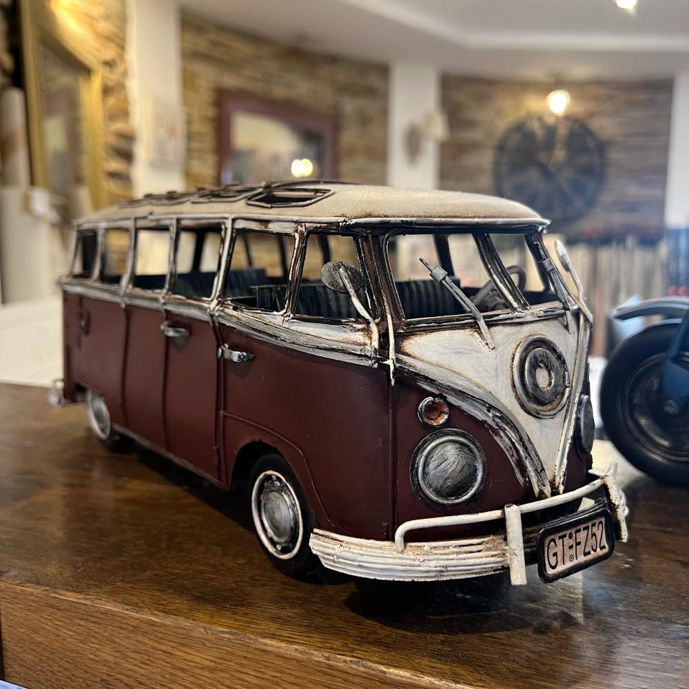 Ručne vyrobený, 33 cm dlhý, prepracovaný model auta VW T1.