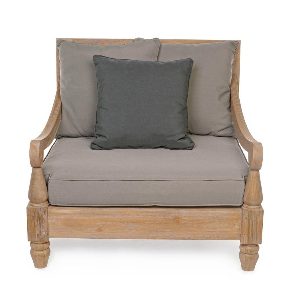 BZ Kreslo s teakovým rámom na vonkajšie použitie v orientálnom stredomorskom štýle, so sivými a modrými vankúšmi