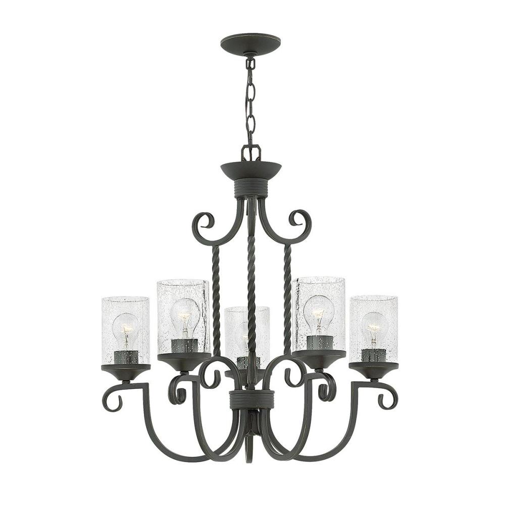 HO Stredomorský štýlový čierny kovaný luster, s bublinatými sklenenými tienidlami, s priemerom 63,5 cm.