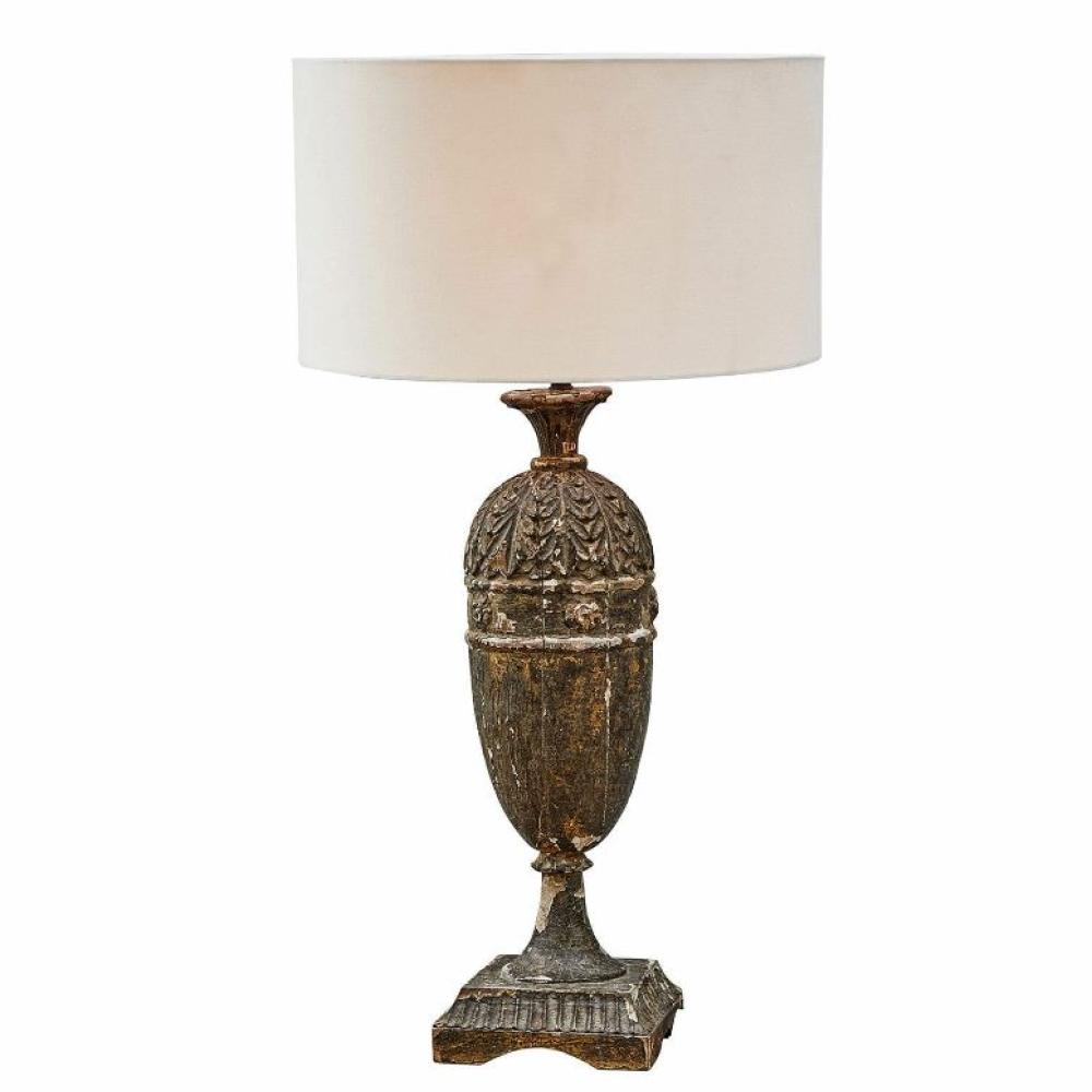 LB Rustikálna, vintage štýlová vyrezávaná drevená stolová lampa s textilným tienidlom, 77 cm vysoká, SKLADOM