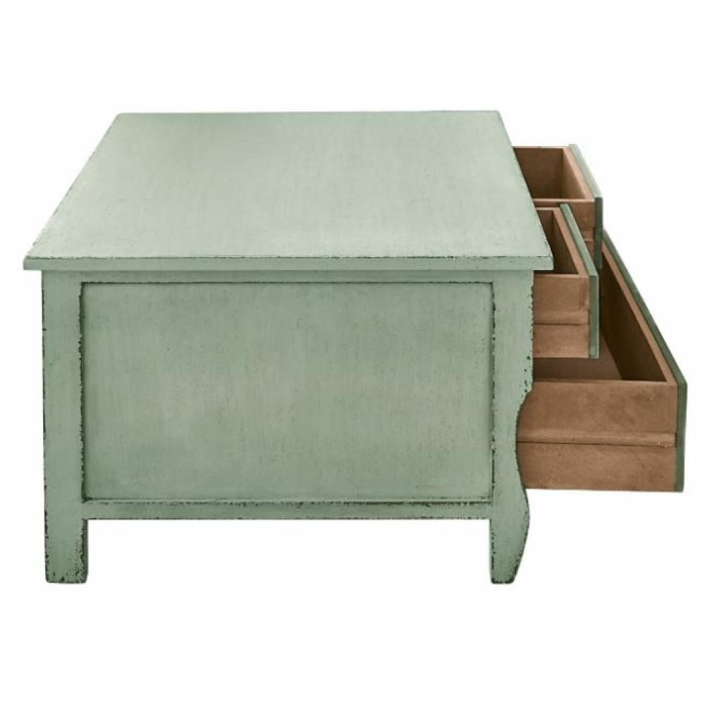 Tento vidiecky štýlový nábytok ponúka všestranné použitie, pretože spája funkcie konferenčného stola a úložného priestoru.