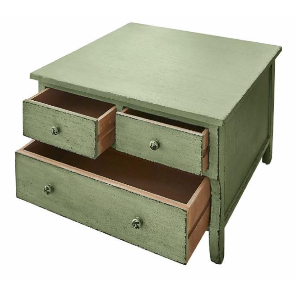 LB Vintage, rustikálny štýl zelený, zásuvkový konferenčný stolík, priemer 67 cm, so šiestimi zásuvkami