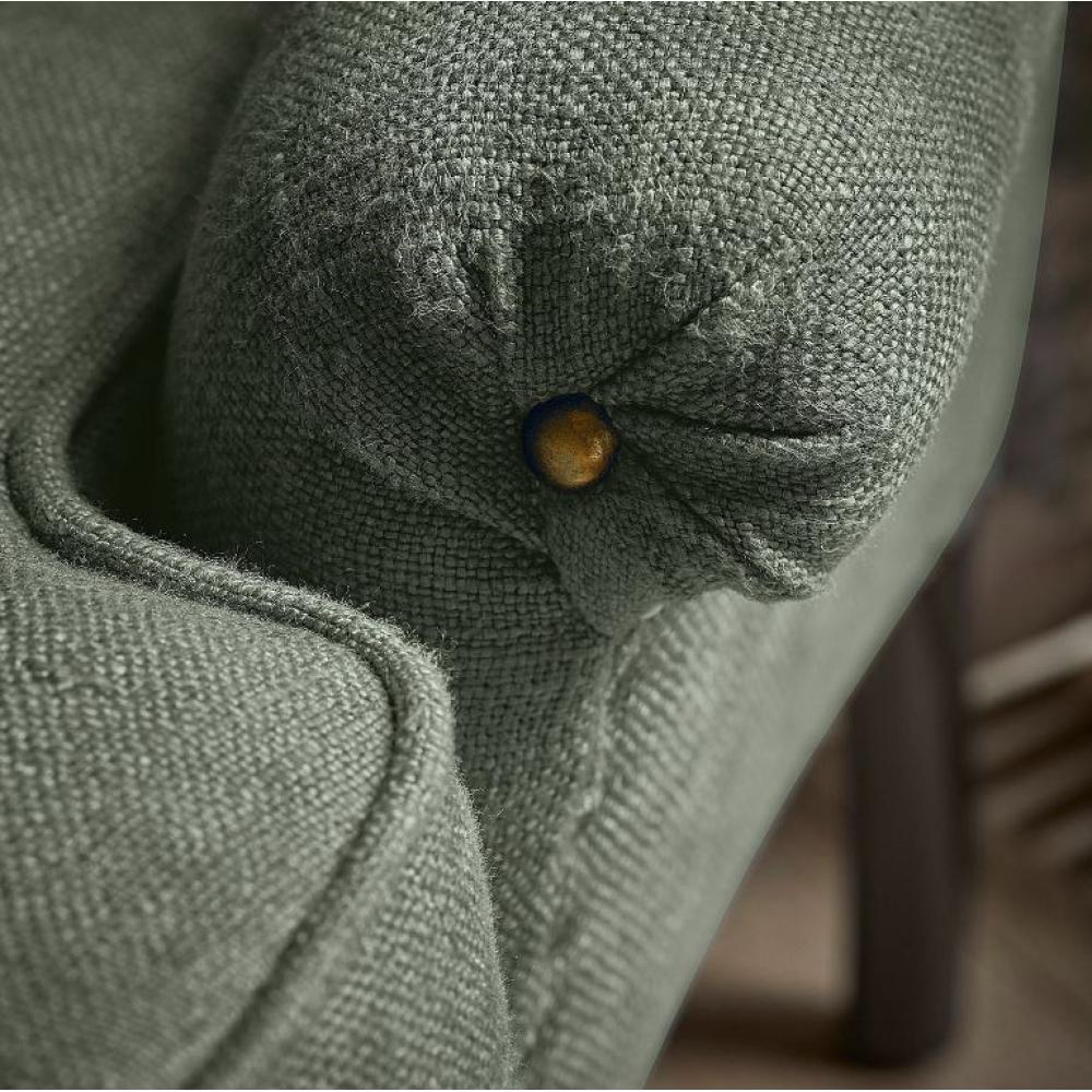 Autentické vreckové prešívanie v štýle Chesterfield spolu s pohodlným vankúšom a jeho symetrickými, geometrickými hranami prispieva k prepracovanému vzhľadu, zatiaľ čo dve opierky na ruky a vysoké operadlo vytvárajú príjemný vzhľad. Vynikajúci pocit pohodlia zohráva významnú úlohu aj látka, ktorá zmesou viskózy a bavlny (70-30 %) poskytuje zaujímavú povrchovú štruktúru a hýčkaním svojou jemnosťou.