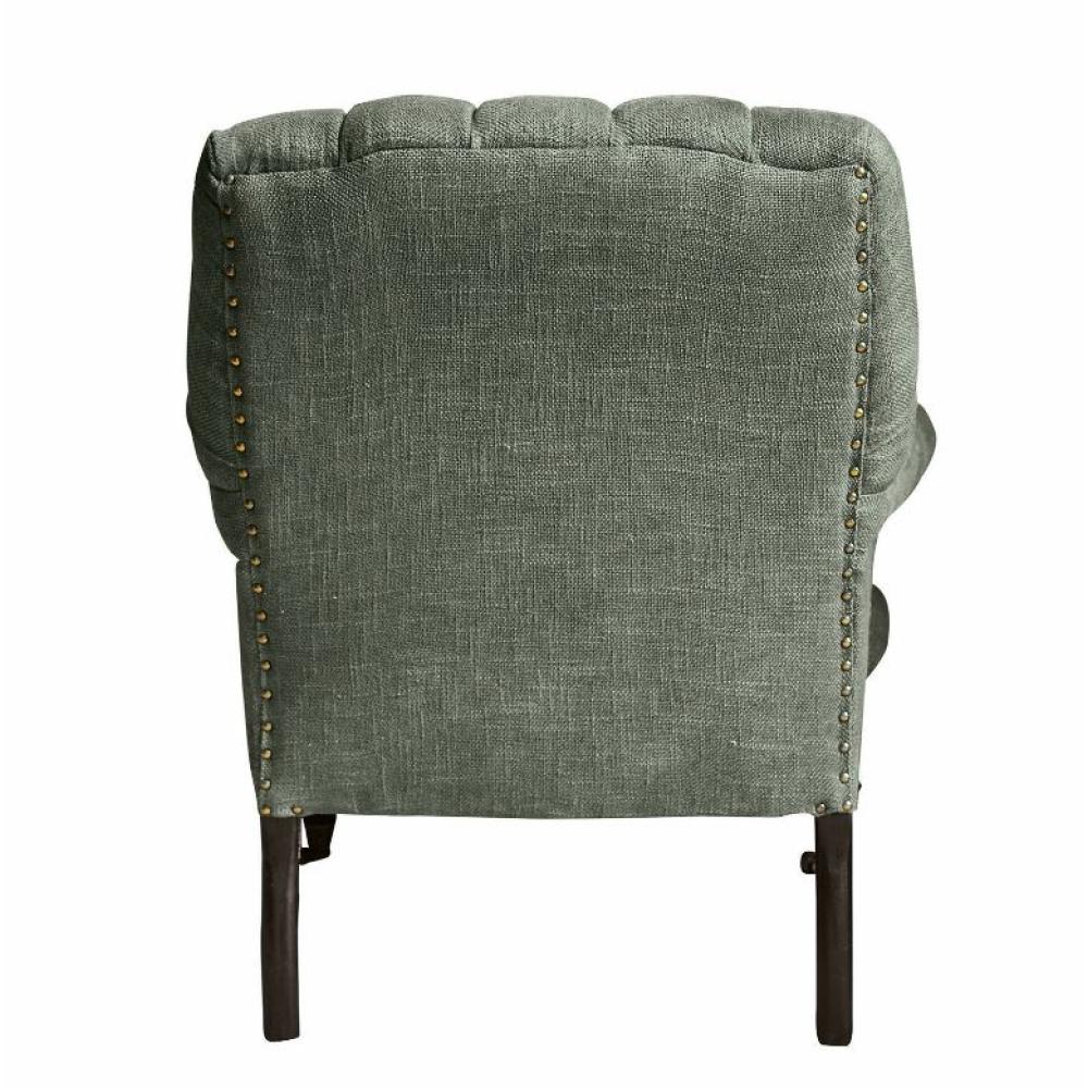 Dve predné nohy sú jemne sústružené z ručne vyrezávaného mangového dreva a dve mosadzné kolieska dopĺňajú exkluzivitu tohto kresla, ktoré je v prípade potreby ľahko prenášateľné.