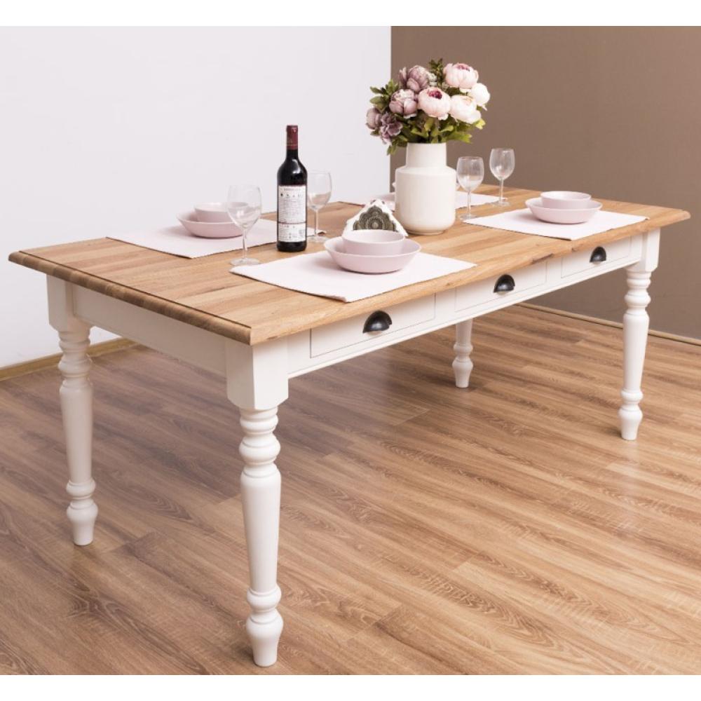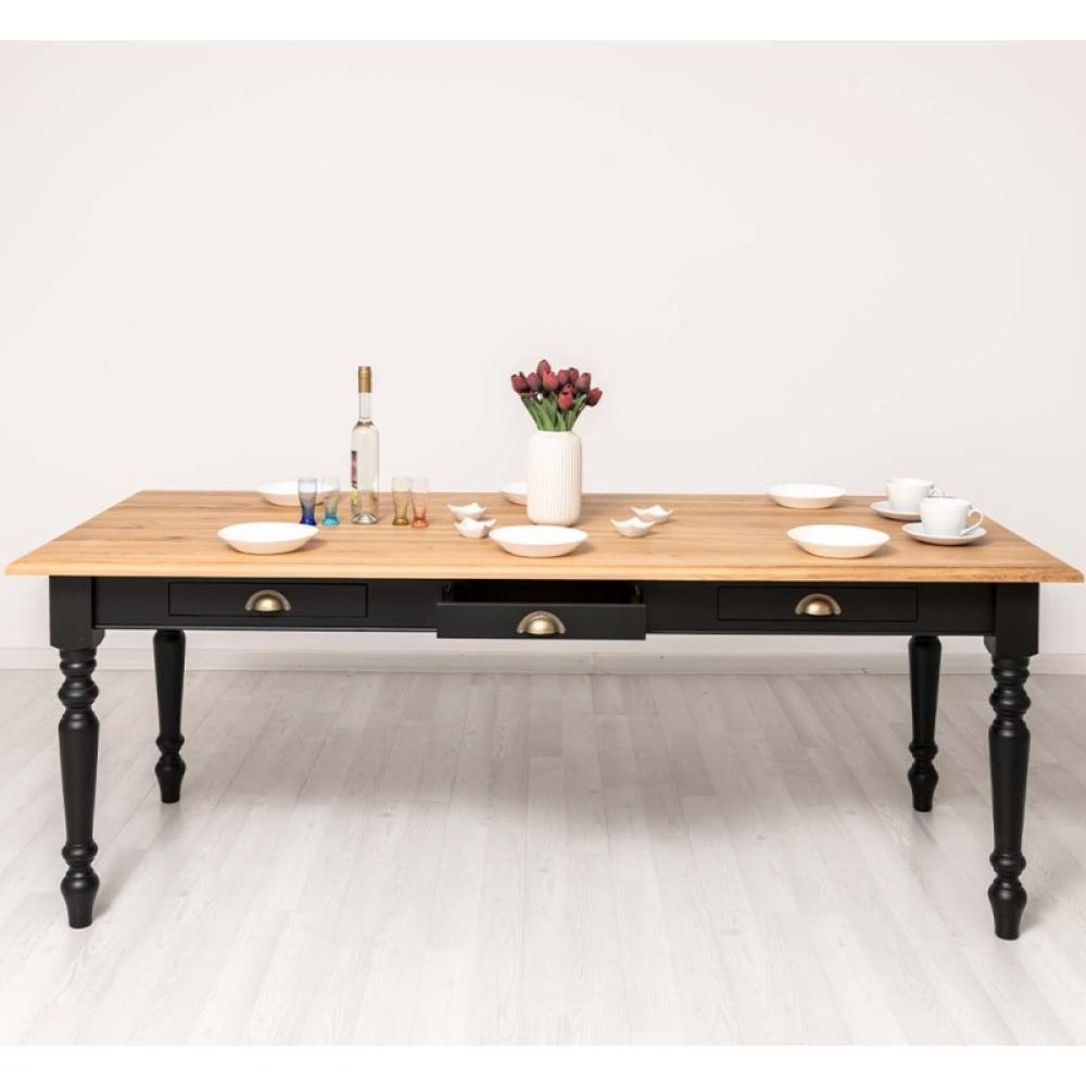 LM Country štýlový stôl z masívu, s tromi zásuvkami, stolovou doskou z masívneho duba, možnosť výberu farby, veľkosti
