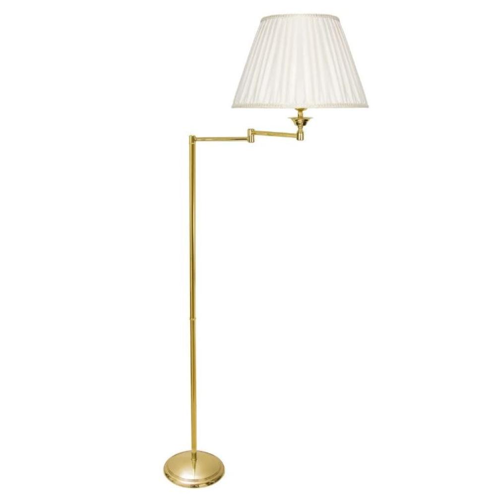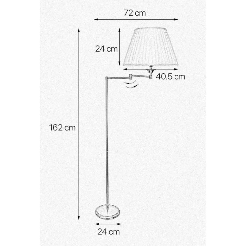 Klasická, elegantná stojaca lampa v zlatej farbe, nastaviteľnej výšky a otočná, vyrobená v Taliansku z prémiovej talianskej mosadze, s bielym luxusným textilným tienidlom sa odovzdáva našim zákazníkom.