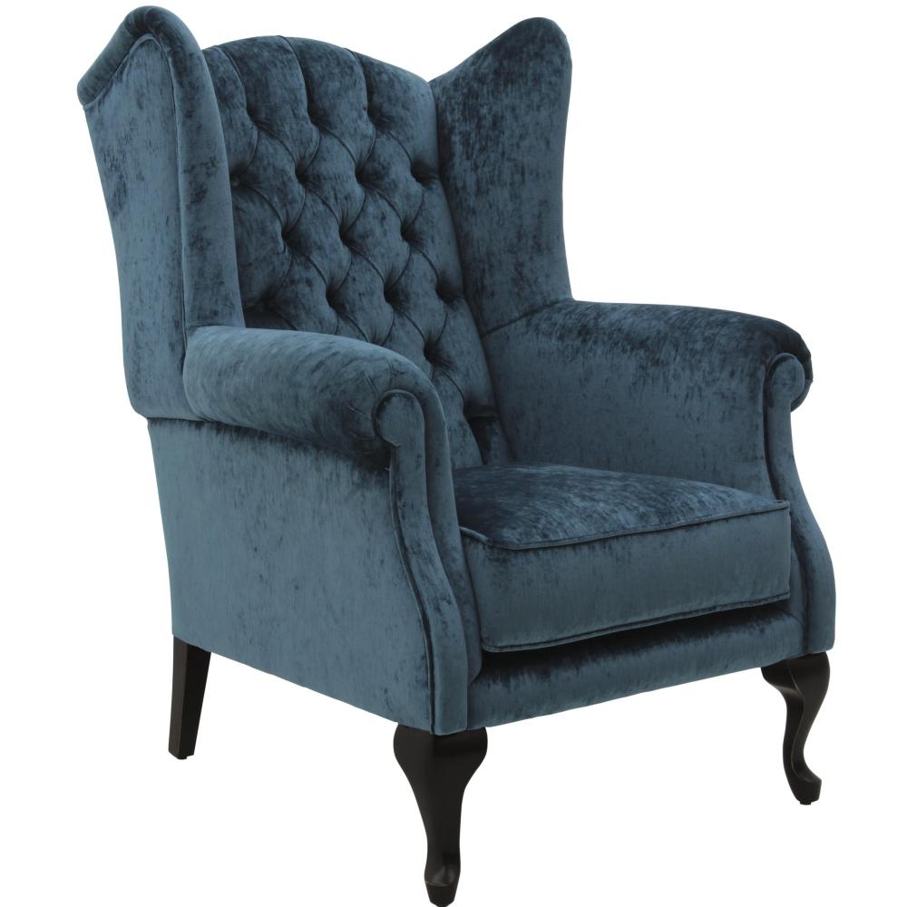 SVS Kreslo s rezbovanými nohami a gombíkovým operadlom, s voliteľným čalúnením a farbou dreva