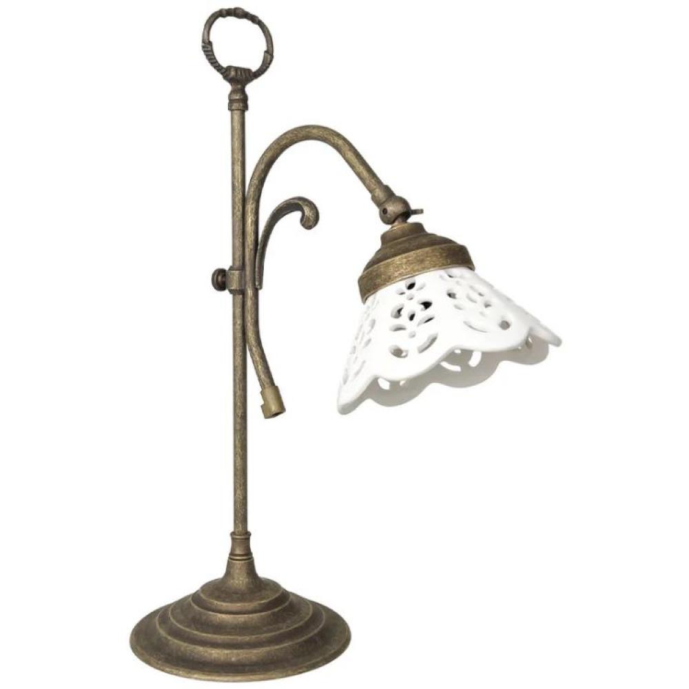 Hlavu stolnej lampy z patinovanej mosadze s prerazovým porcelánom je možné nastaviť, čím umožňuje používanie smerovaného svetla.
