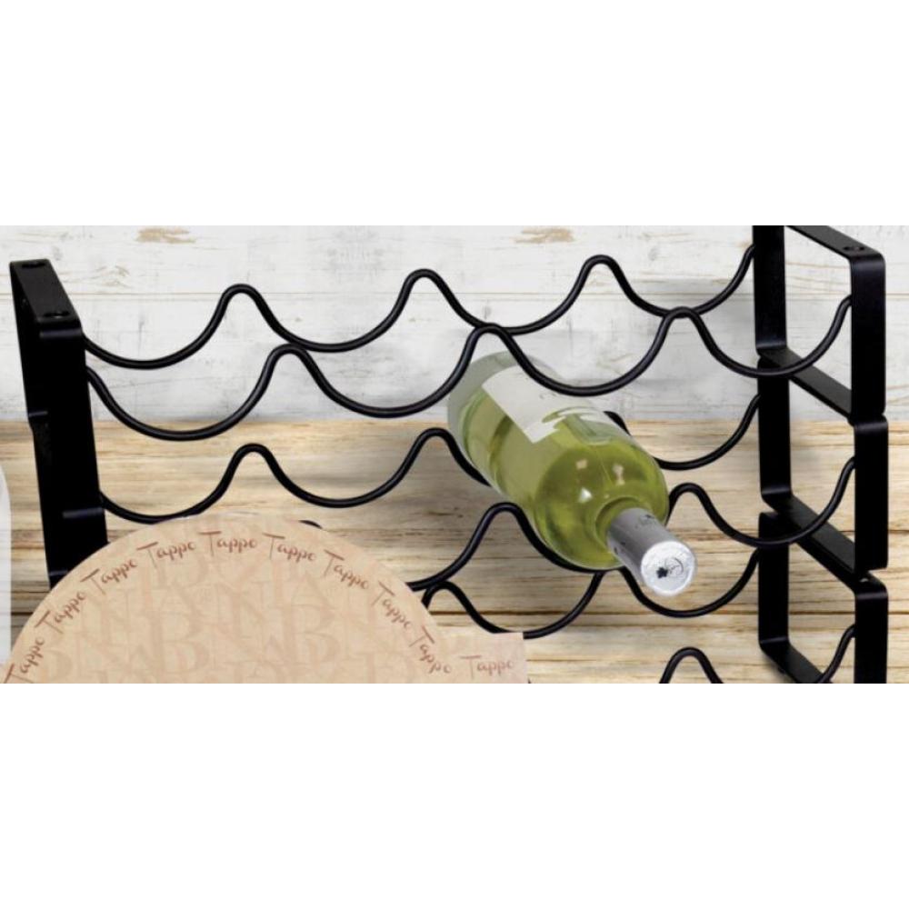 Čierny stojan na fľaše vína, skladovateľný, stohovateľný.