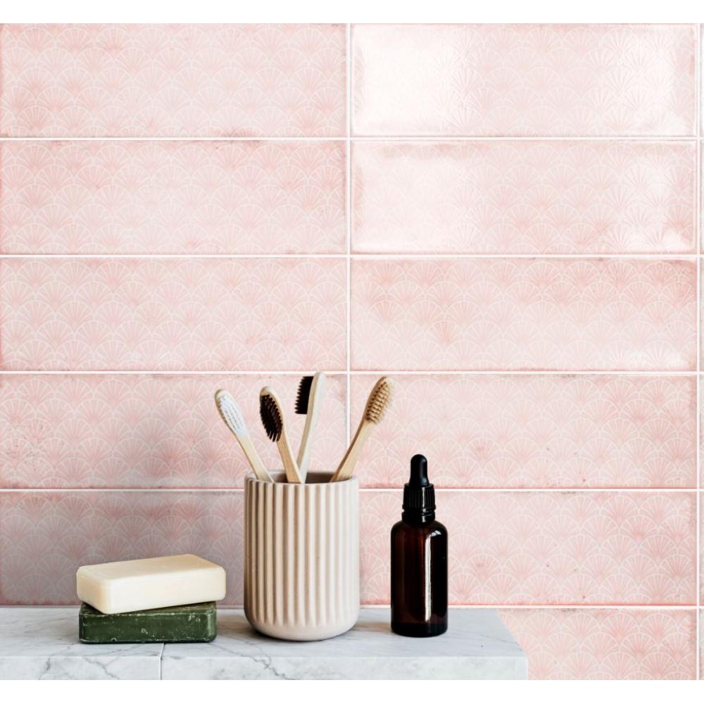 LK1 Ružová, vzorovaná, 10x30 cm, patinovaná, rustikálna, vlnitý povrch, stredomorská dlaždica / AKODEKOR