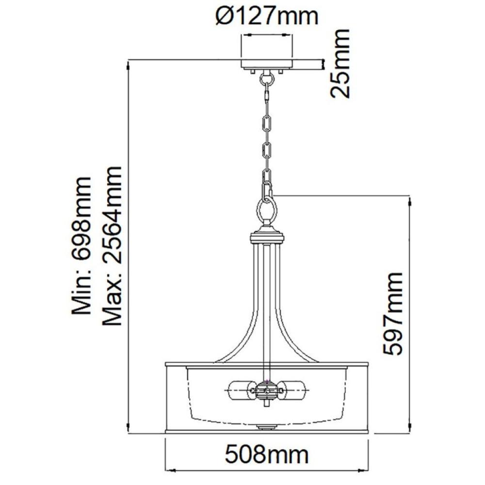 Výška lampy je nastaviteľná medzi 69,8 a 256,4 cm pomocou reťaze.