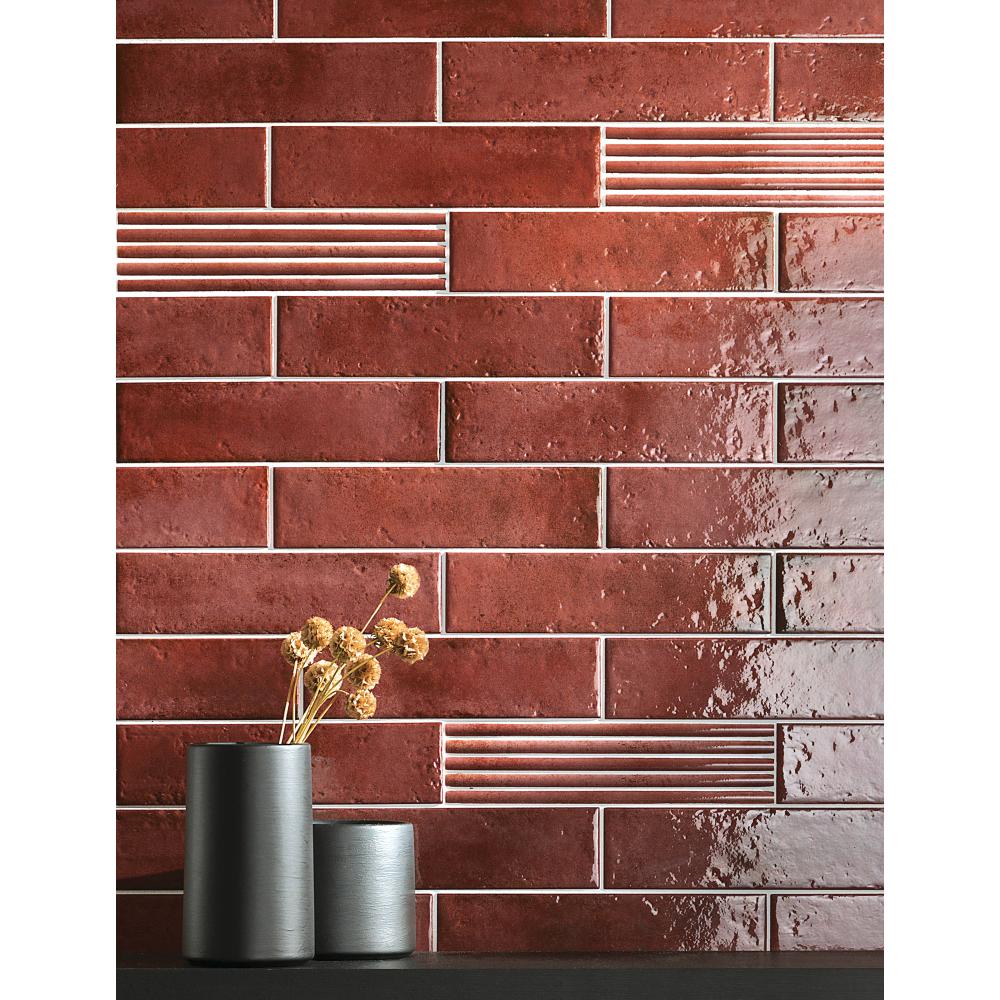 SC Ručne robená vzhľad, vlnitá, antikovaná červená rustikálna lesklá nástenná dlaždica / 16,5x16,5 cm