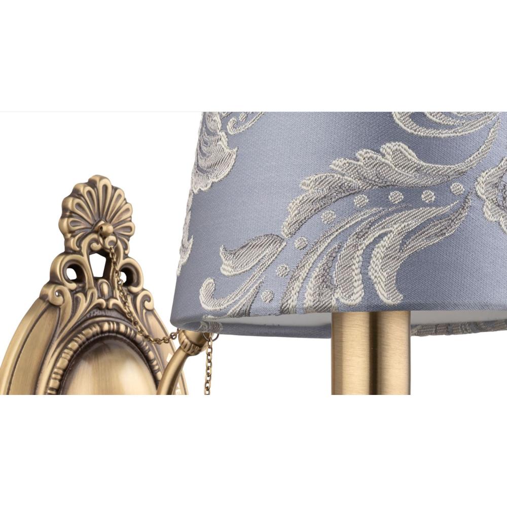 Vzorované, vkusné textilné tienidlo vyžaruje eleganciu, starožitný mosadzný kovový povrch vzbudzuje ducha starých čias.
