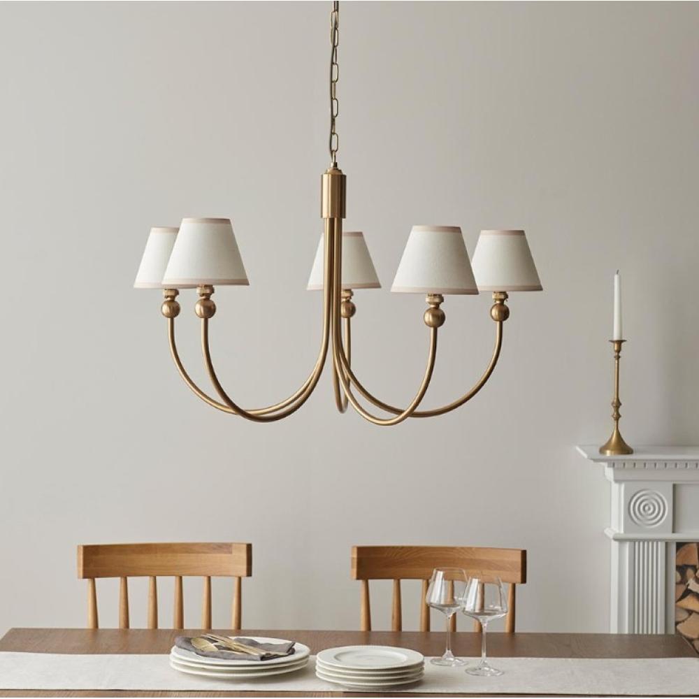 HO Klasický vzdušný mosadzný luster s 5 látkovými tienidlami, 92 cm priemerom