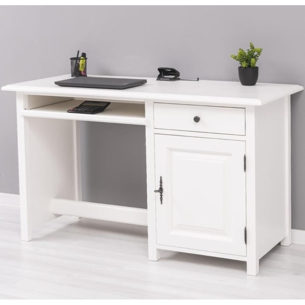 LM Klasický biely písací stôl, z masívneho dreva, s výsuvnou poličkou na klávesnicu