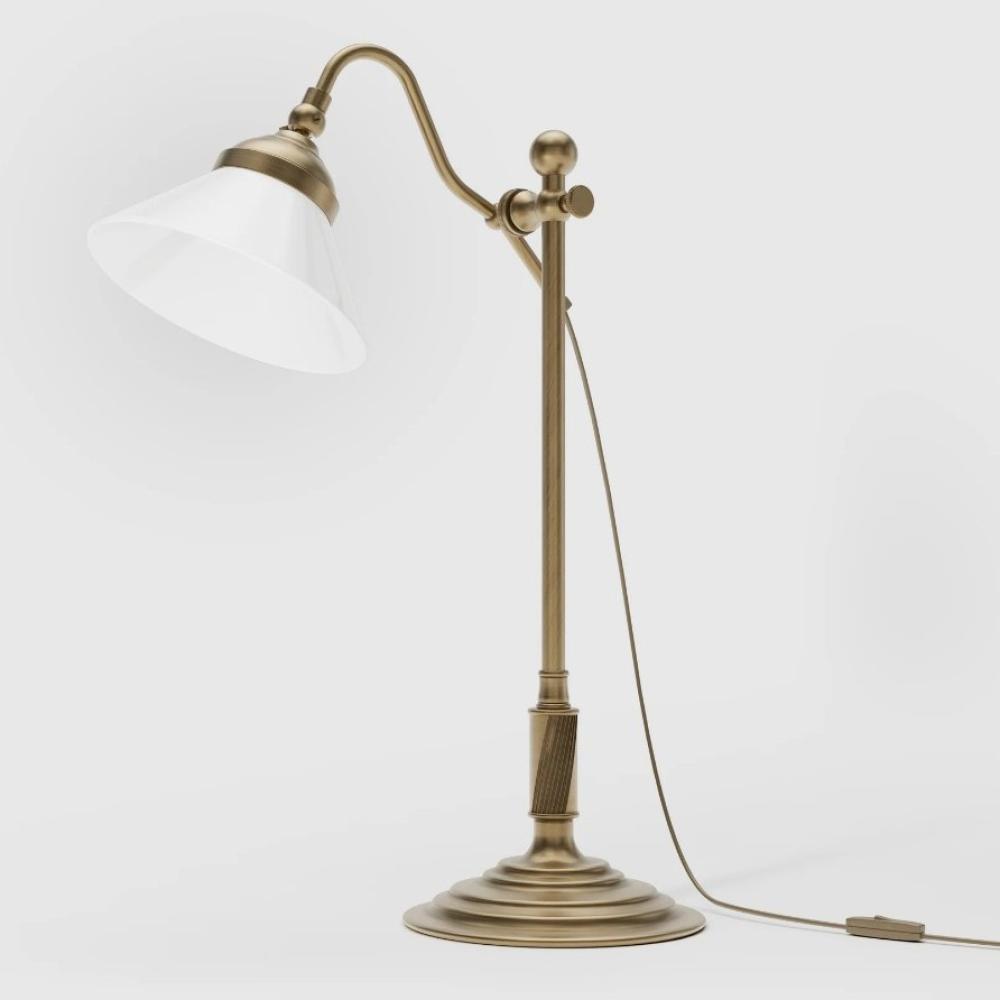 GH Klasická mosadzná stolová lampa, 40 cm vysoká, s opálovým skleneným tienidlom