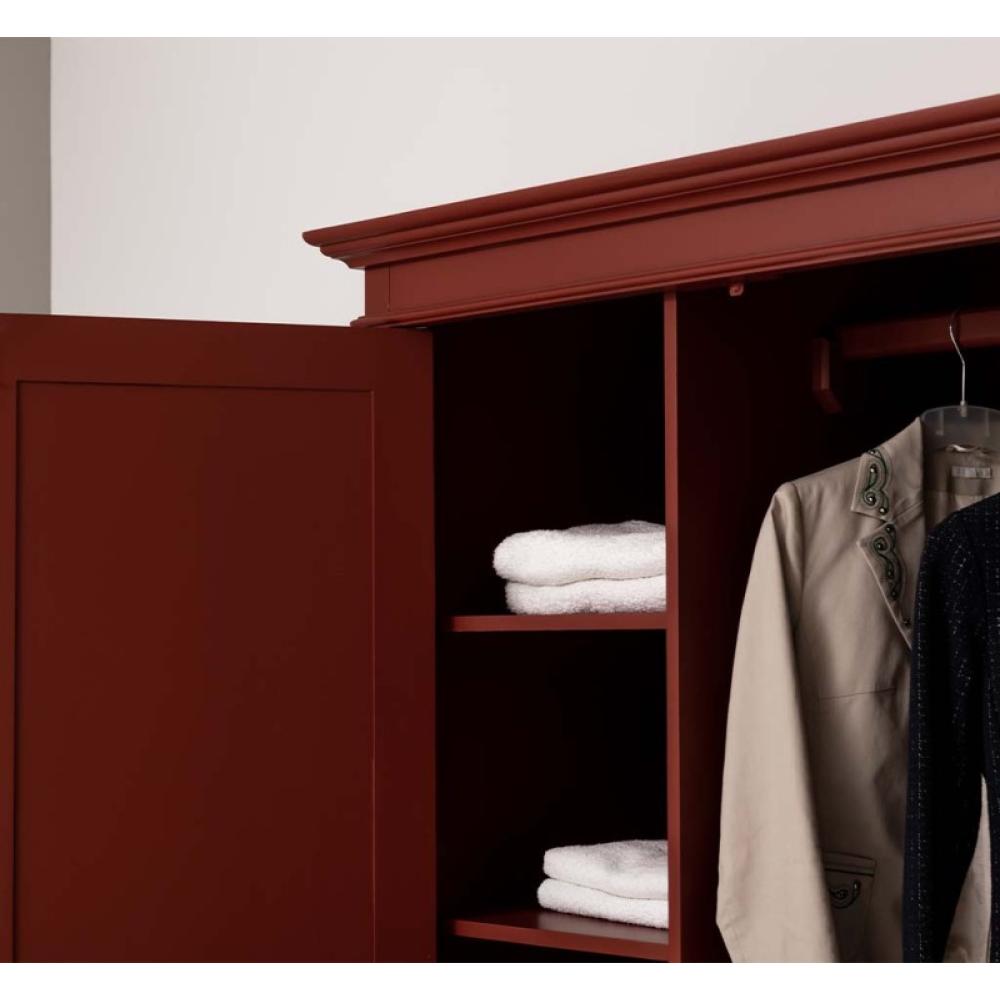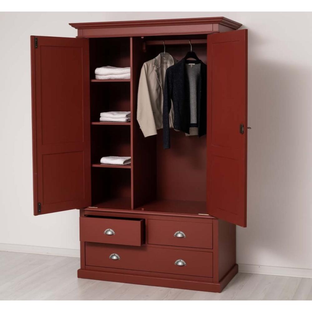 LM Rustikálna country štýlová červená šatníková skriňa, z masívneho dreva, voliteľné povrchy, farby