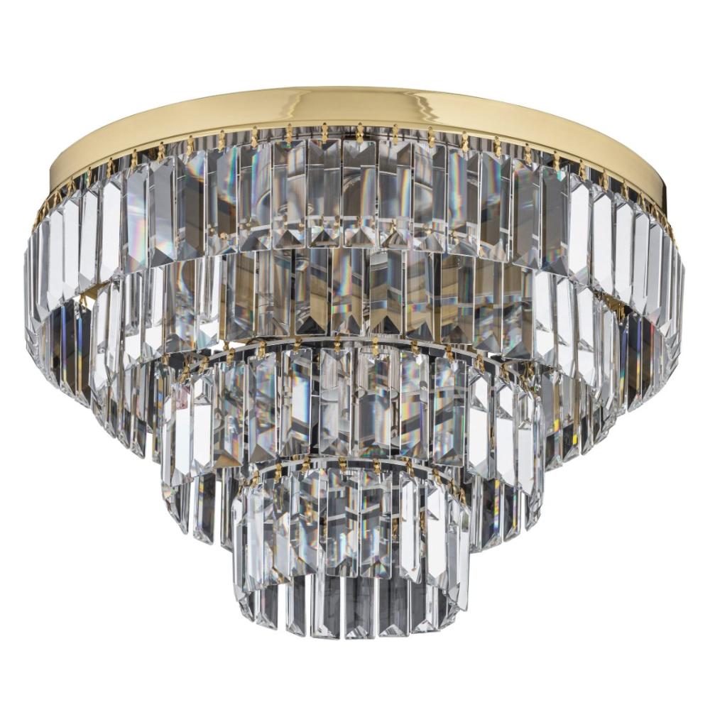 HOKU Lesklá zlatá štruktúra stropnej lampy pre nízku výšku stropu, do luxusného interiéru, dekorovaná kvalitnými krištáľmi / priemer 45 cm x výška 30 cm