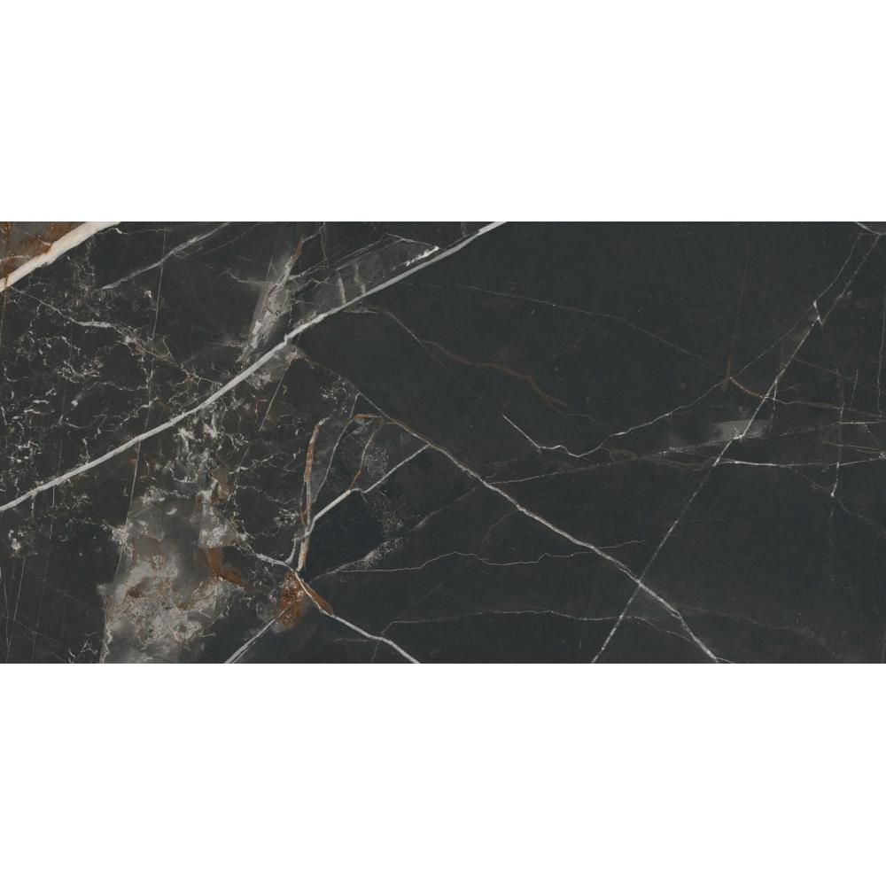 Španielsky výrobca touto kolekciou otočil estetiku klasického bieleho mramoru Calacatta: hlbokočierny základ je narušený výraznými bielymi a sivkastými žilami, čím vytvára naraz monumentálny a moderný povrch.