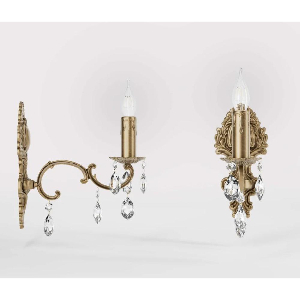 Precízne vypracované mosadzné ramená zdobia jemne brúsené krištáľové závesky, ktoré lámu svetlo a premietajú kúzelnú hru na stenu.