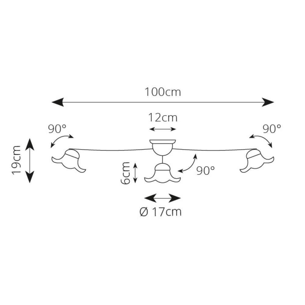 Tienidlá na konci troch ramien sú vybavené guľovými čapmi, takže smer svetla možno mierne nastaviť, aby svietilo presne tam, kde je to potrebné.