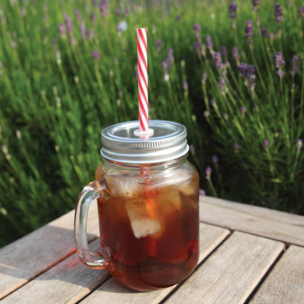 Či už naplníme náš sklenený pohár limonádou alebo nealkoholickým nápojom, táto červená retro slámka vytvára jedinečnú atmosféru. Závitové kovové viečko neumožní ani sladké vône cítiacim hmyzom preniknúť. Odporúčame k nemu našu 7,7 litrovú limonádovú nádobu, v ktorej sa dá ľahko a jednoducho pripraviť nápoj pre rodinu, pomocou jej kohútikového systému si každý môže sám servírovať pripravený nápoj.