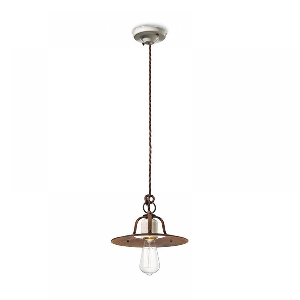 FL Retro štýlová, keramická závesná lampa s popraskaným povrchom, hrdzavým tanierom