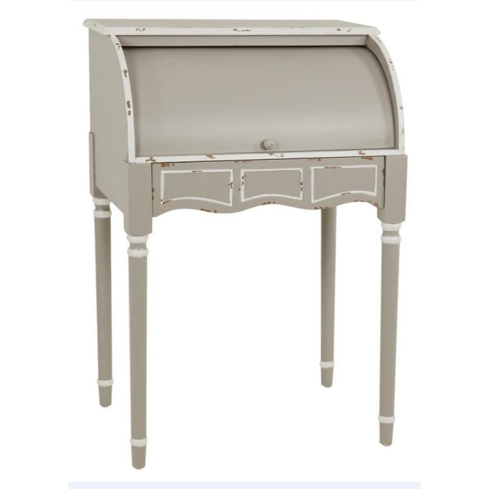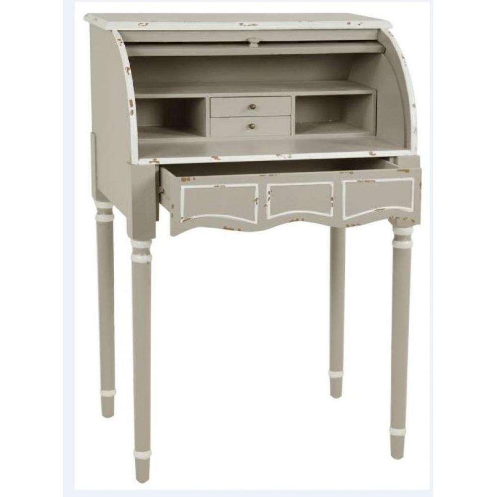 Jeho vrch je sklopný, takže keď ho nepoužívame, v uzatvorenej časti sa neukážu papiere. Uzavretá časť s malými zásuvkami a poličkami a väčšou dolnou zásuvkou poskytuje dostatok úložného priestoru. Kombinácia s bielym dekoratívnym maľovaním, taupe, svetlo sivou farbou pripomína provensálsky interiér. Ženský písací stôl, ktorý odporúčame do chaty aj mestského prostredia.