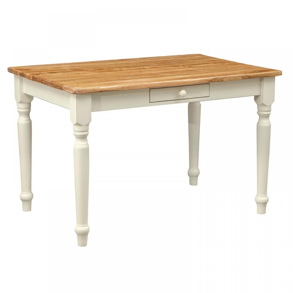 Stôl v country štýle vyrobený z masívneho lipového dreva má maľované biele nohy a dosku z kvalitného prírodného lipového dreva, ktorá má prirodzený povrch, teplú farbu a pripomína tradície provensálskych oblastí v interiérovom dizajne.