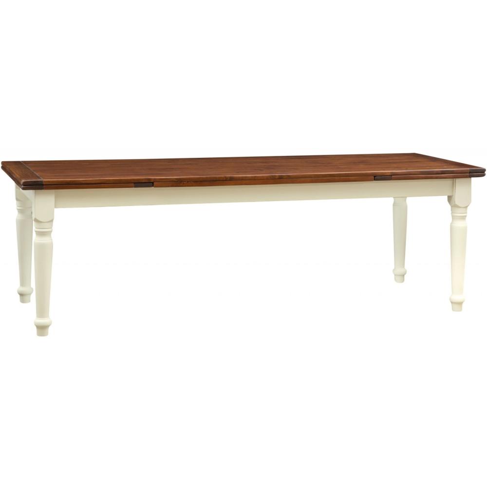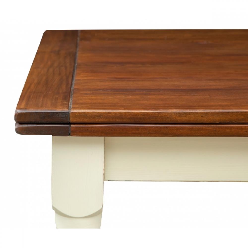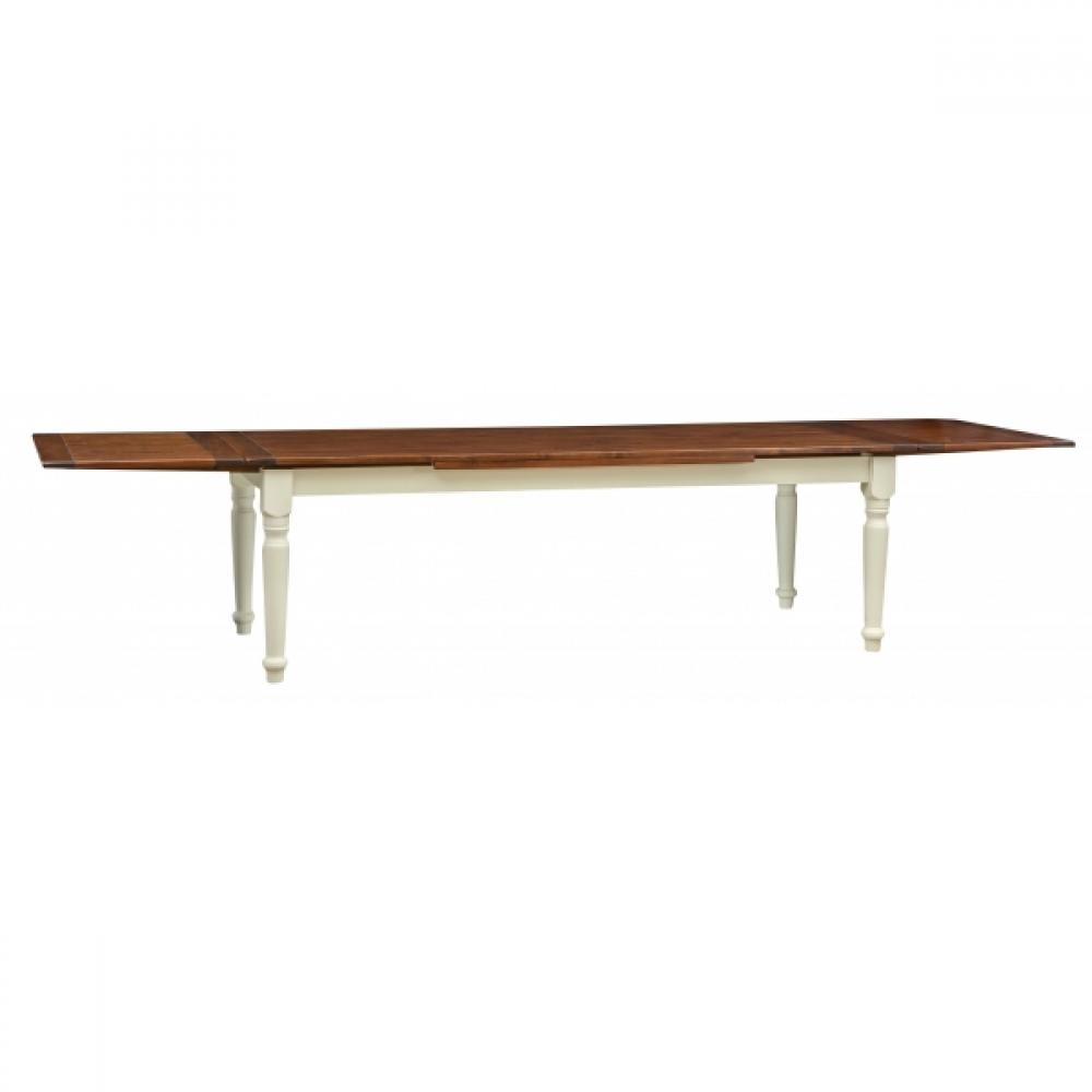Country štýlový stôl z masívneho lipového materiálu s konštrukciou a maľovanými bielymi nohami zabezpečuje kvalitný kus nábytku.