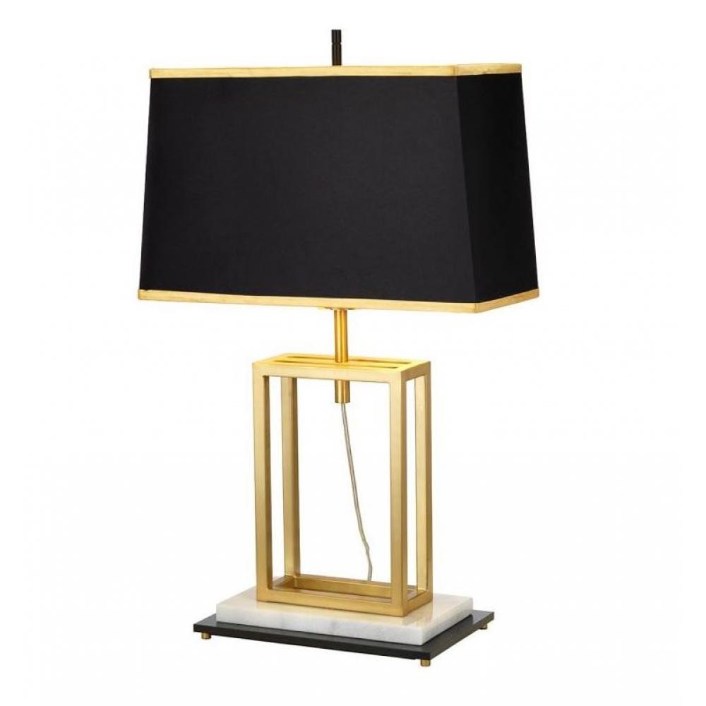 Čierna, hranatá textilná tienidlo s imitáciou hodvábu, medeno-zlatá kovová konštrukcia, mramorový podstavec charakterizuje túto klasickú art deco stolnú lampu, ktorú odporúčame do exkluzívneho, luxusného, klasického interiéru.