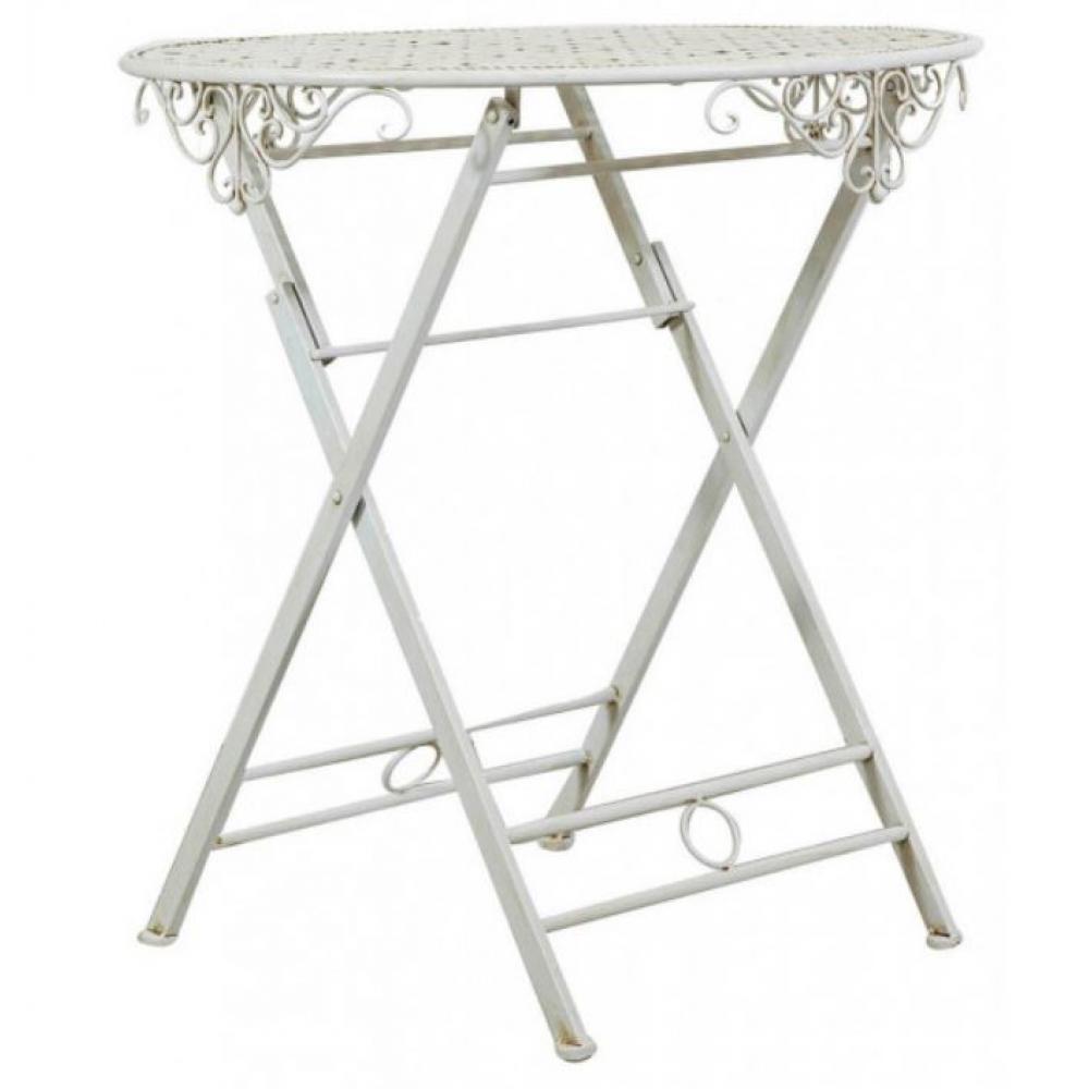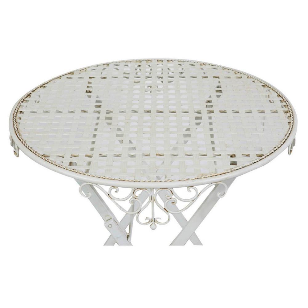 BISC-Skladací stôl z kovanej železa, antická biela, 70x76 cm