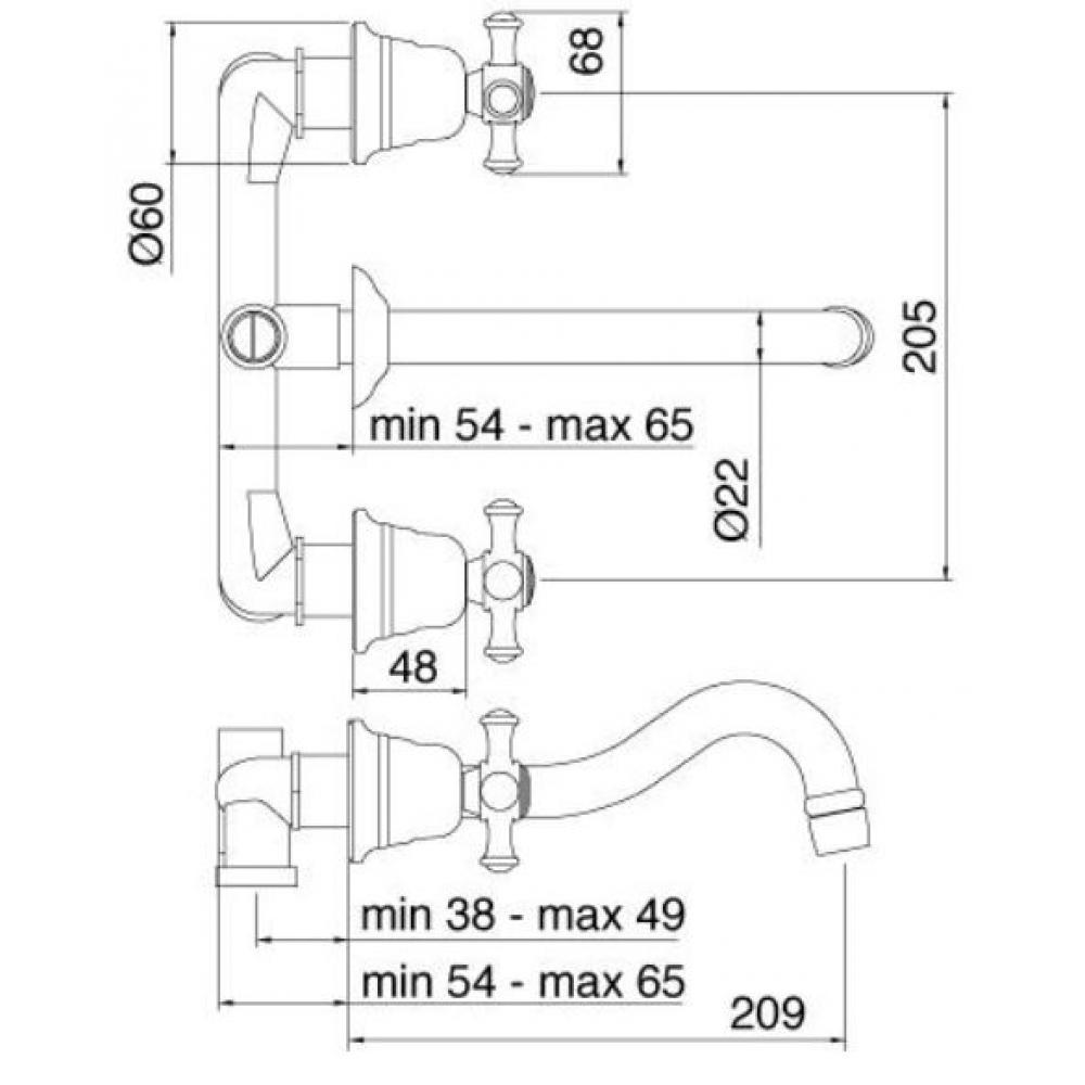 Kód: TE-OLDITALY4452-CC Nástenná umývadlová batéria