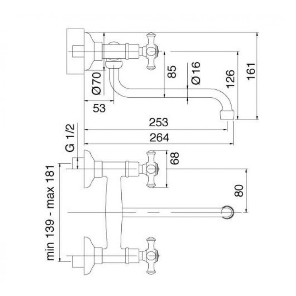 TE Klasický štýl, nástenná dvojramenná batéria